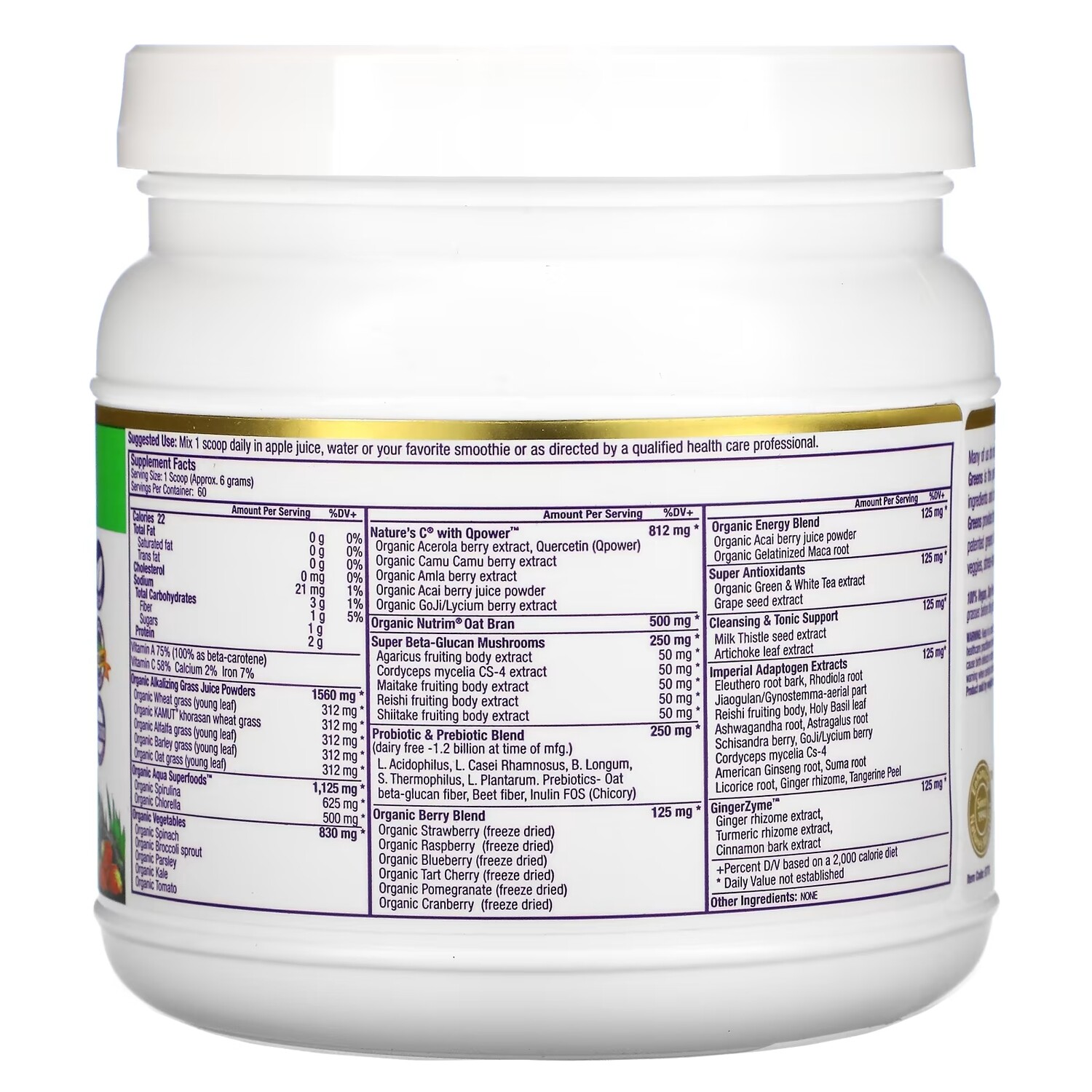 •Порошок подщелачивающих соков ростков, смесь водорослей Aqua Superfoods, ягоды, натуральный витамин C, овощи, пробиотики, адаптогены