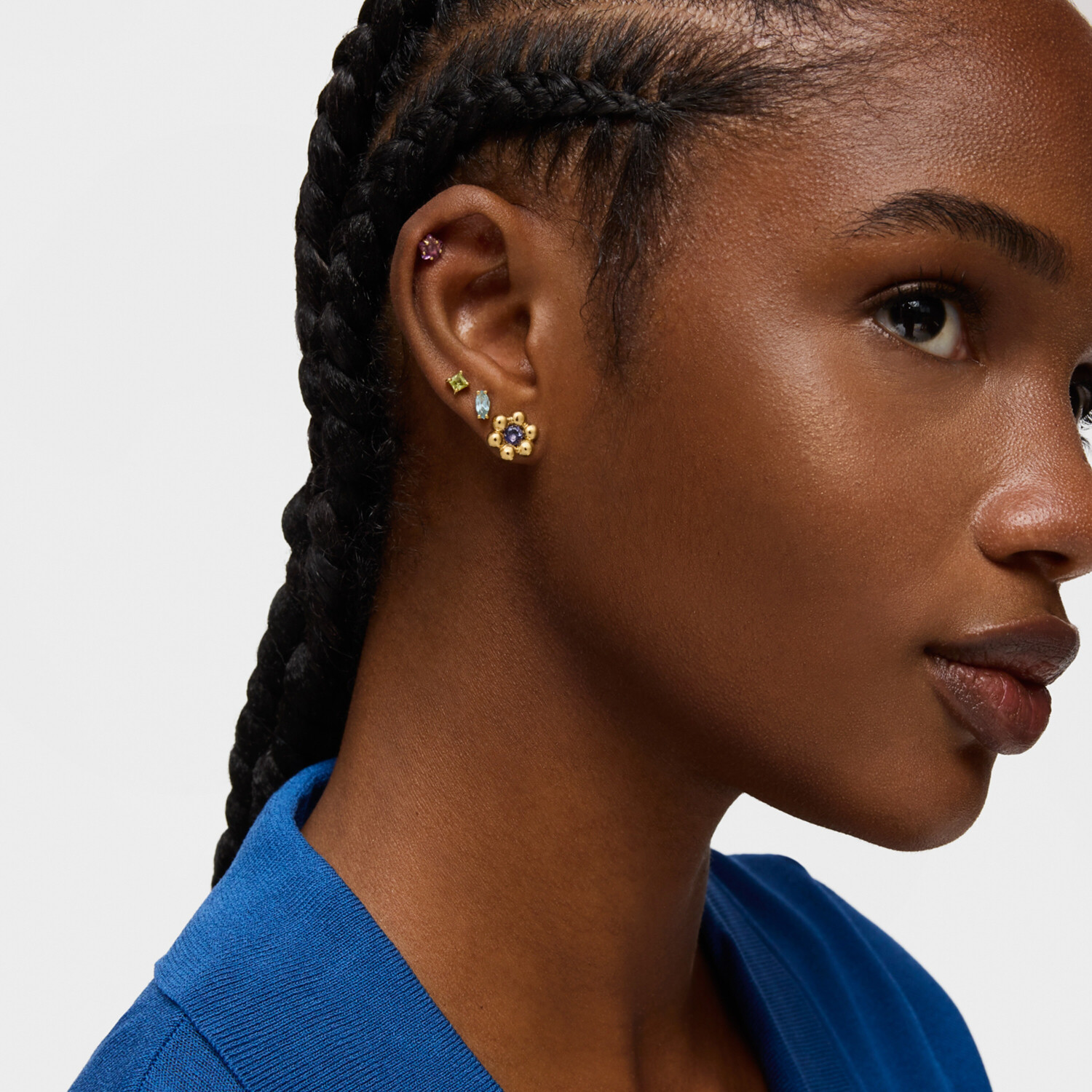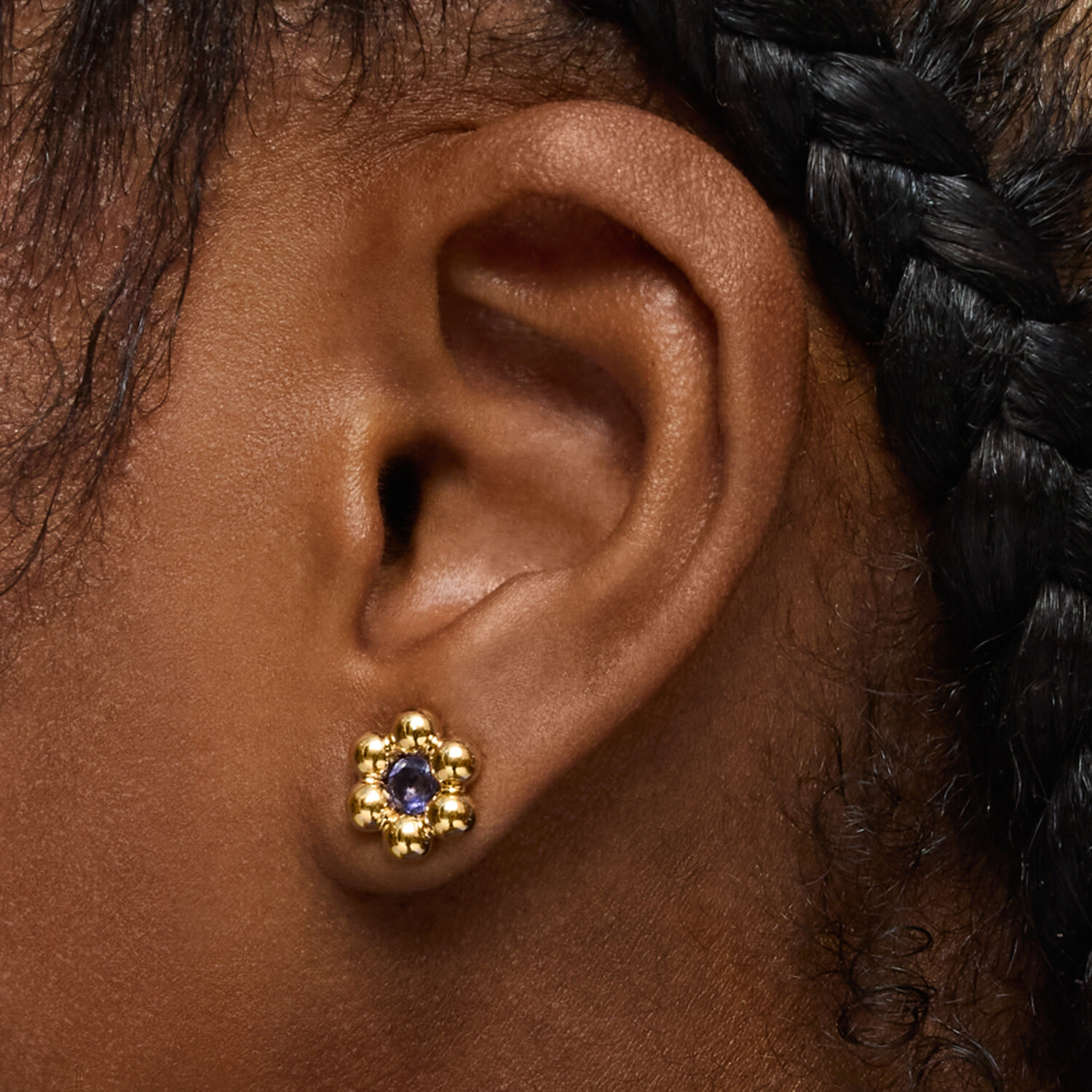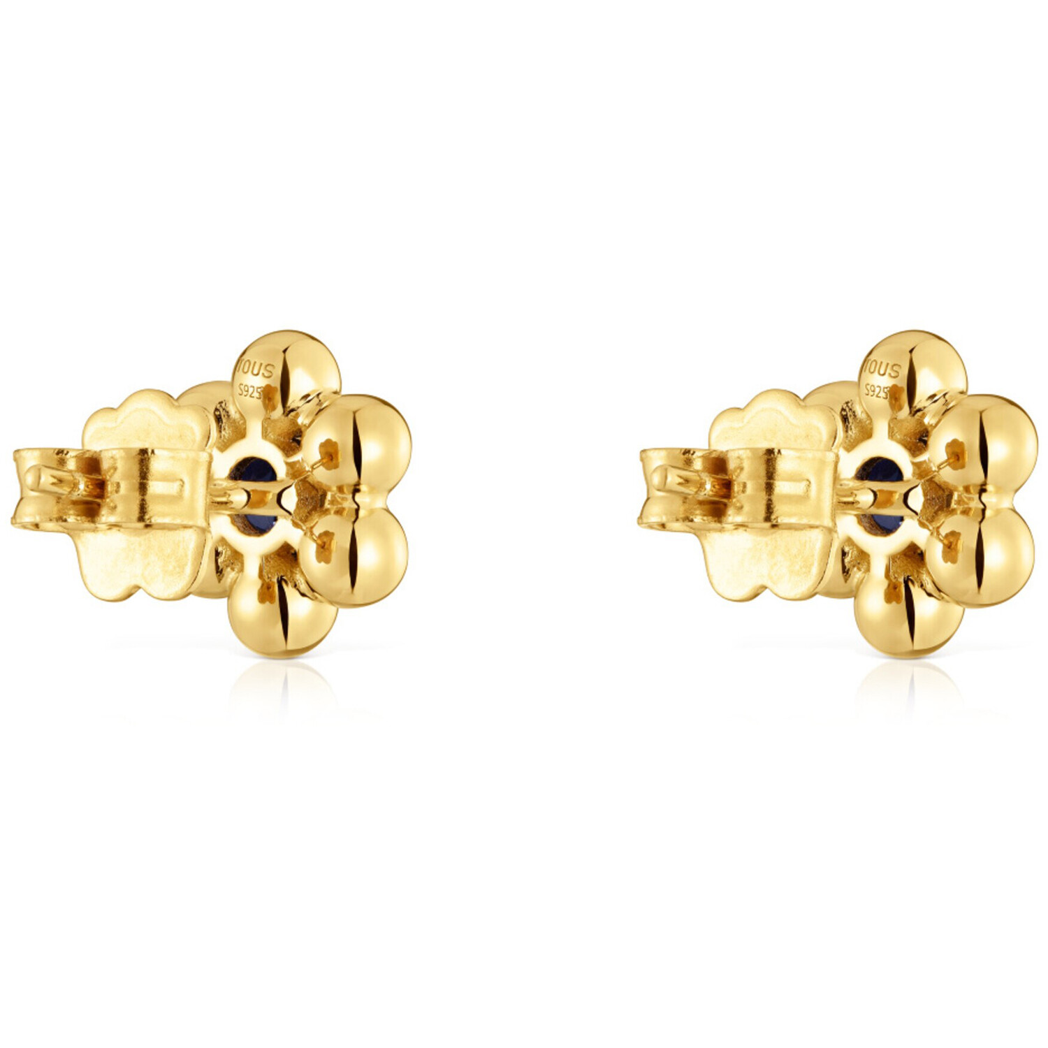 Короткие серьги-цветы TOUS Sugar Party с покрытием из 18-каратного золота поверх серебра и круглым граненым иолитом в центре.