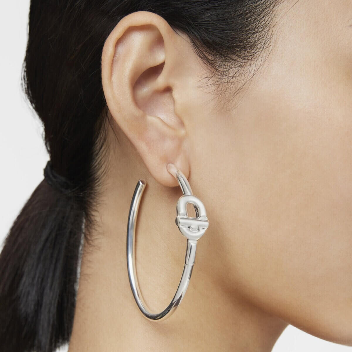 Длинные серьги-кольца Tous Manifesto из стерлингового серебра с центральной подвеской. Диаметр серьги: 59,6 мм.