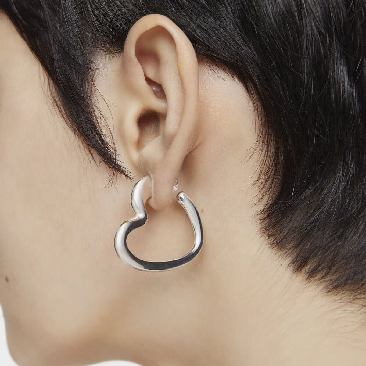 Одиночная серьга-обруч в форме сердца из стерлингового серебра. Размер серьги: 31 мм.