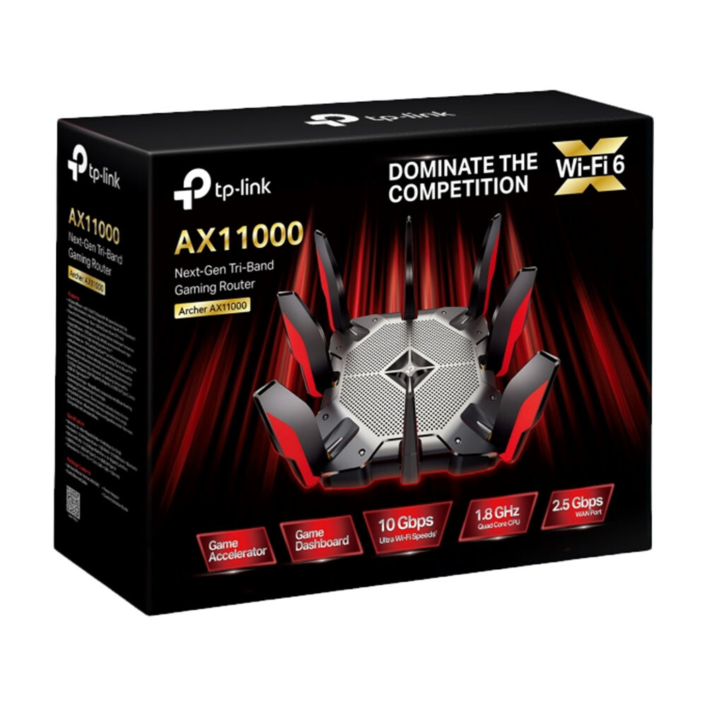 Высокая скорость = меньше задержек для игровых ПК. Вооружённый Wi‑Fi 6, Archer AX11000 — это мощный роутер, обеспечивающий широкую зону покрытия и скорость Wi‑Fi до немыслимых 10756 Мбит/с.