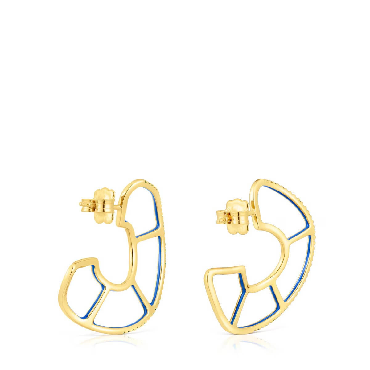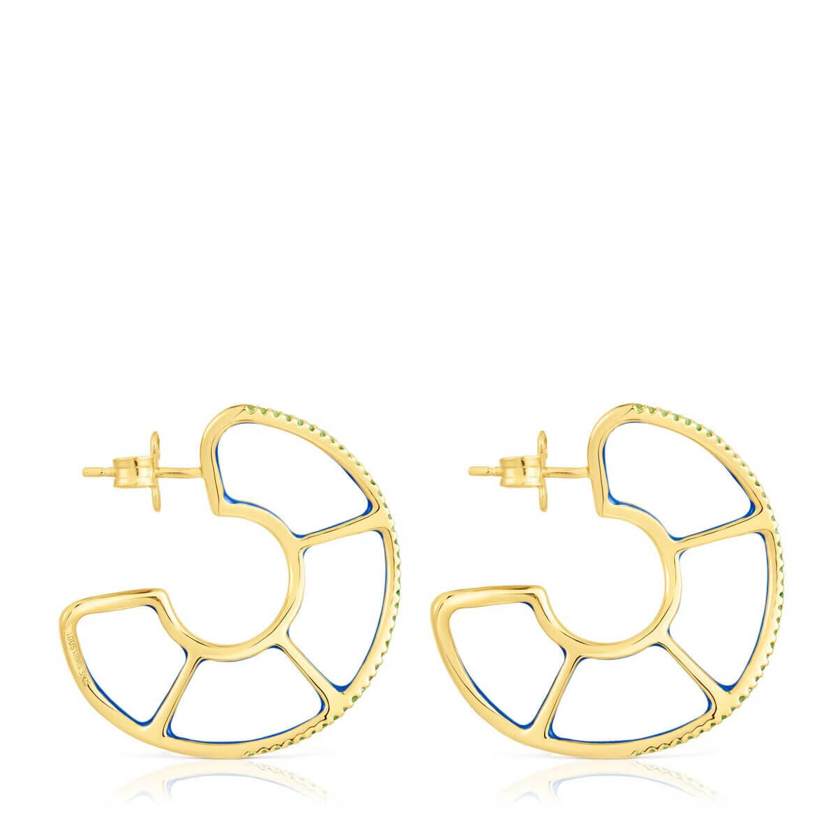 Серьги-кольца TOUS Gregal из позолоченного серебра с хромдиопсидом круглой огранки размером 1 мм и синей эмалью внутри. Внешний диаметр серьги: 31 мм.
