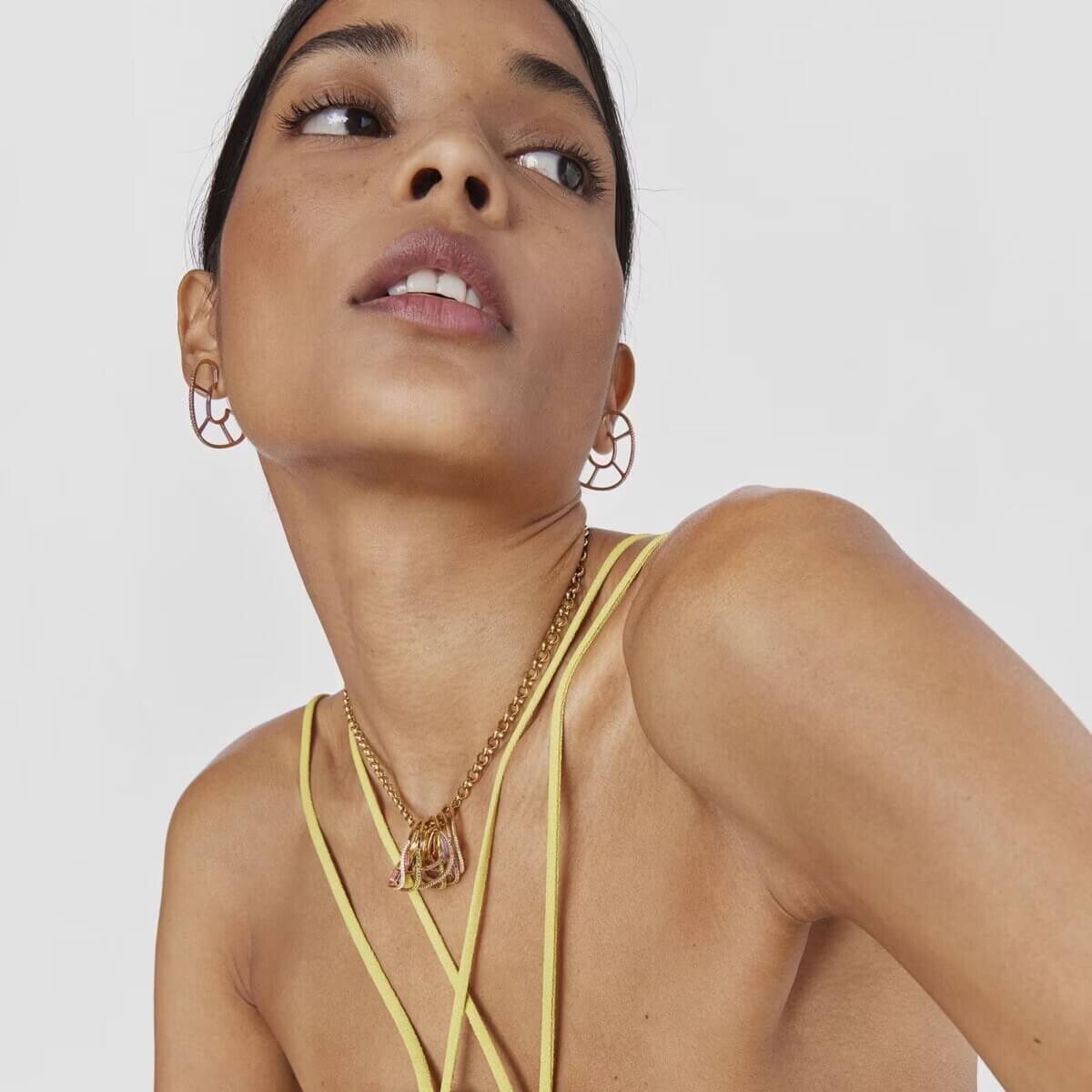 Механизм и созданные им формы послужили источником вдохновения для создания этих серебряных позолоченных сережек с хромдиопсидами из коллекции Gregal, вдохновленной органичными формами природы