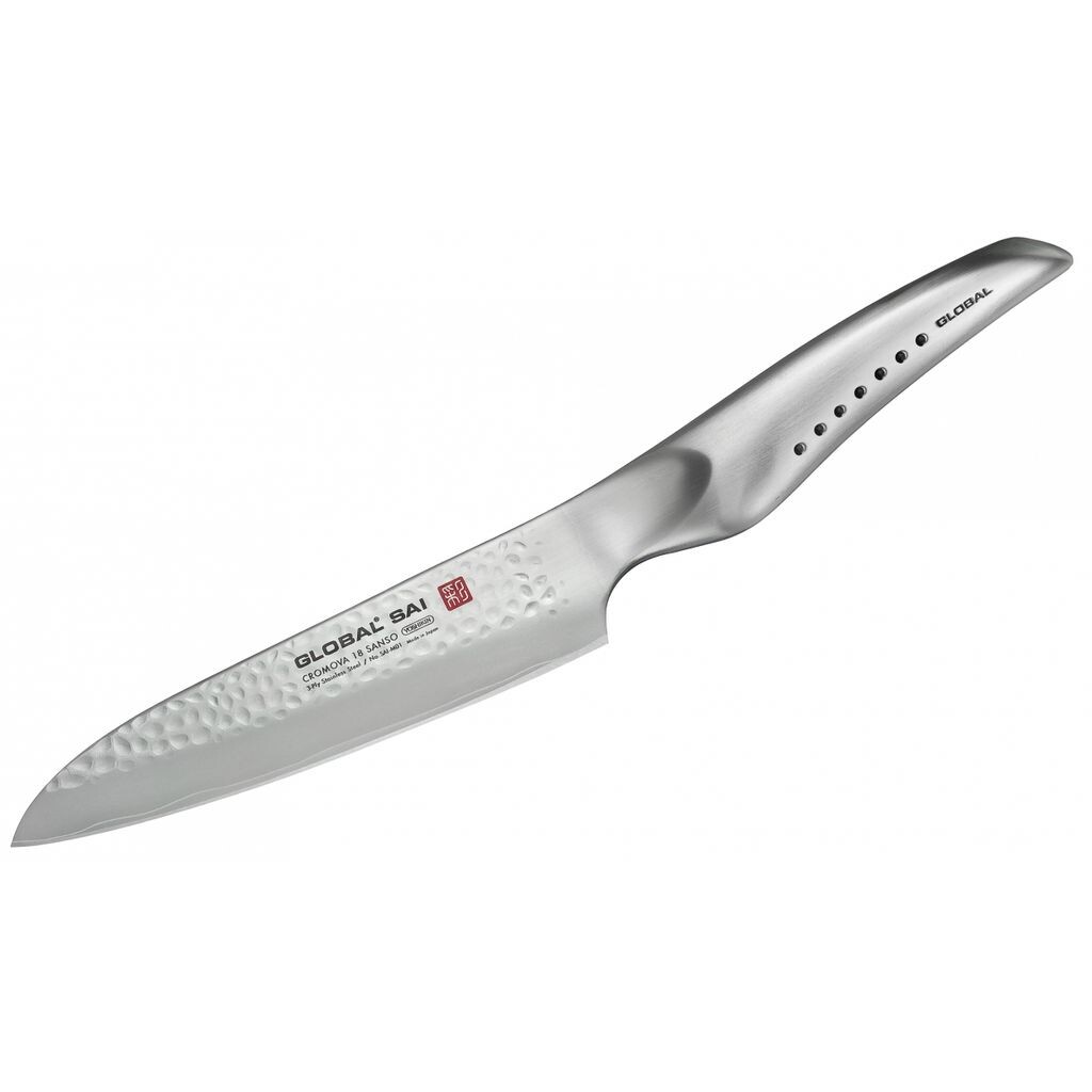 Не в каждом случае на кухне нужен очень большой кухонный нож, такой как SAI-01. Для многих поваров ножи этой категории просто слишком велики или слишком тяжелы, или и то, и другое. Таким образом, выпустив Поварской нож Global SAI 14 см SAI-M01, Йошикин добавил в свою серию Global SAI соответствующий поварской нож меньших размеров. При длине клинка 14 см и весе 144 грамм он значительно меньше и легче САИ-01. Но это не значит что САИ-М 01 лишь немного уступает своему «старшему брату» САИ-01 по качеству обработки и эксплуатационным характеристикам. SAI-M 01 также является ножом Global высочайшего качества. В частности, повара с меньшими руками всегда предпочтут SAI-M 01 поварскому ножу Global SAI 19 см SAI-01