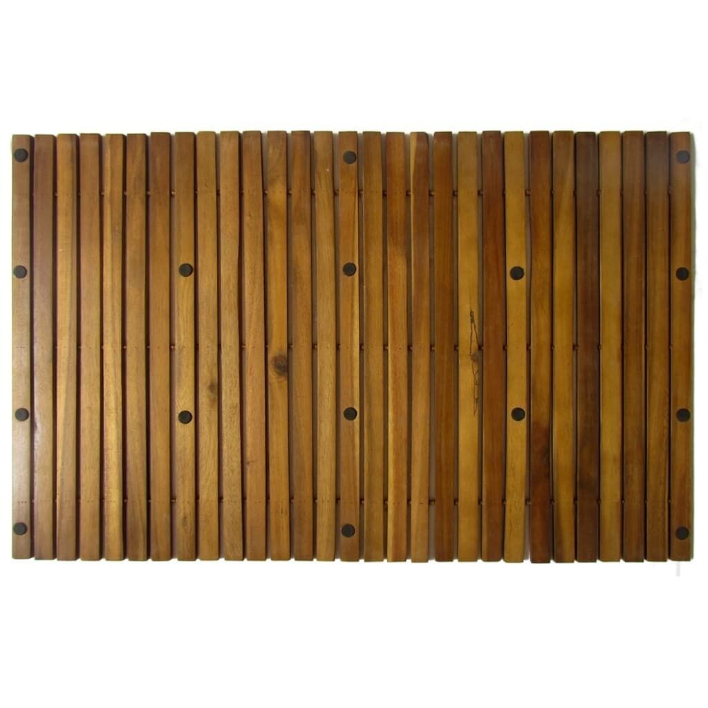 Коврик изготовлен из высококачественной древесины акации, тропической твердой древесины, естественно устойчив к атмосферным воздействиям и чрезвычайно долговечен. Коврик имеет прорезиненную основу для предотвращения скольжения.