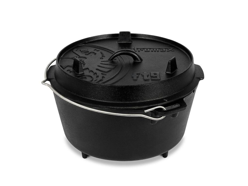 Голландская духовка ft12 емкостью 10,8 л — это кастрюля для больших компаний, лагерей и вечеринок. Голландская печь может приготовить еду для 20 человек.