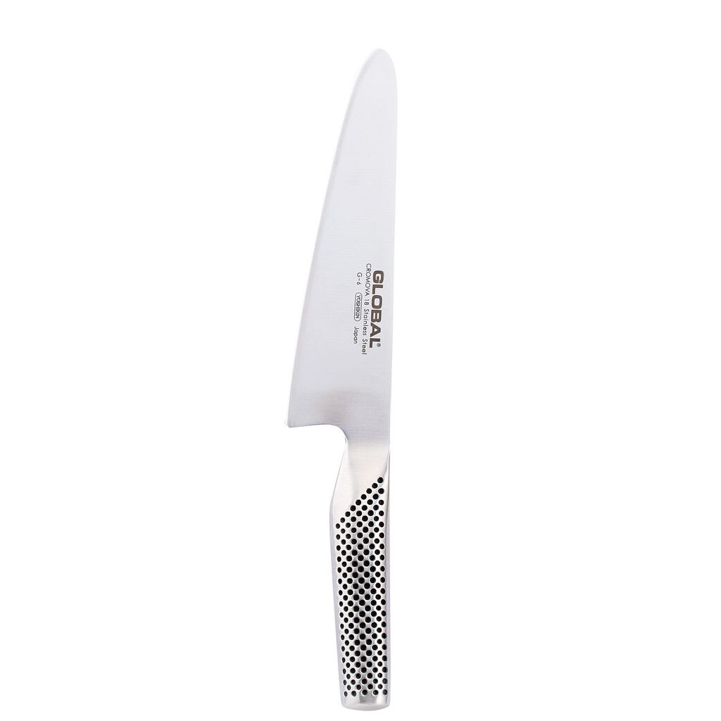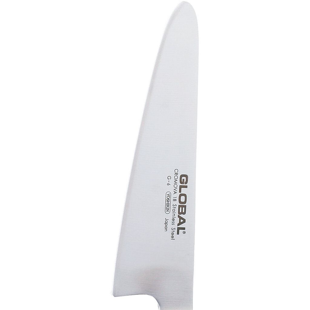 Нож для мяса G-06 Global Yoshikin - универсальный слайсер внешне очень похож на своего старшего брата G-01 и, конечно же, имеет те же внутренние ценности, то есть особые качества ножа Global. Однако при длине лезвия 18 см он значительно короче и поэтому особенно подходит для нарезки и порционирования небольших кусков мяса (до 500 г). Кончик лезвия ножа для резки мяса G-06 Global Yoshikin также закруглен, что существенно снижает риск получения травмы при нарезке. Попробуйте G-06 сами, и вы обнаружите, что младший брат G-01 прекрасно вписывается в вашу кухню и в ваш портфель ножей.