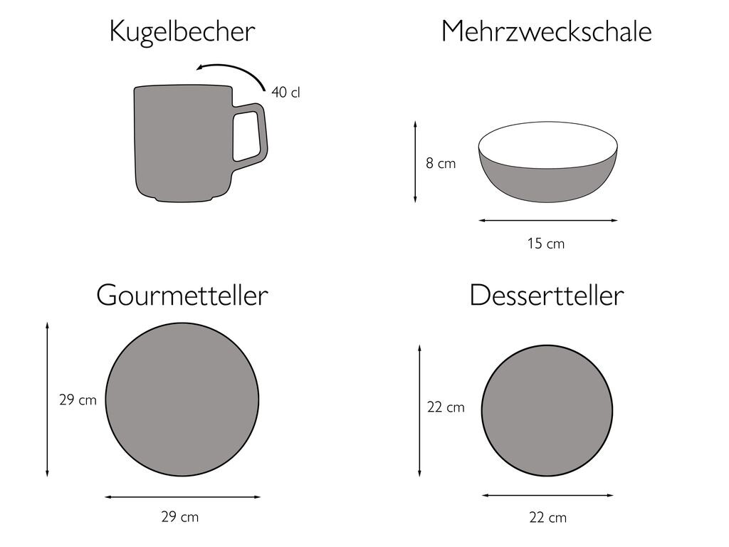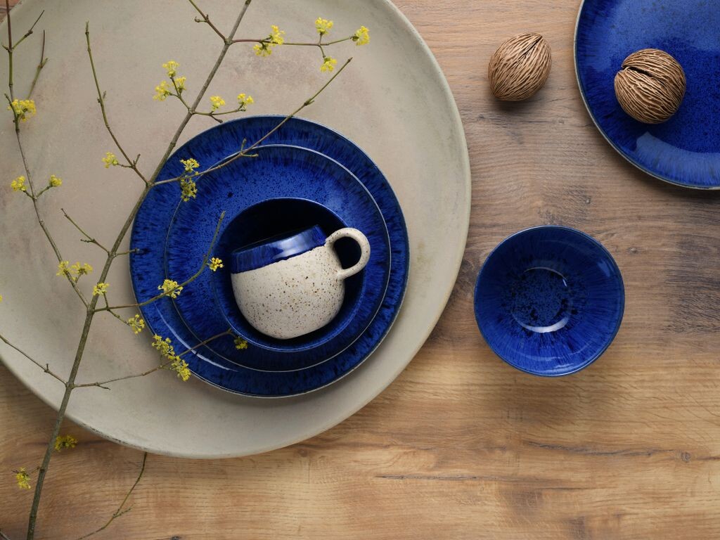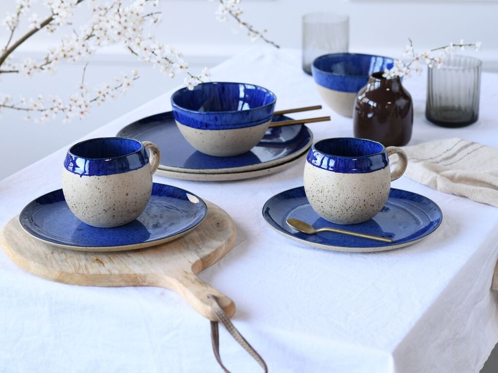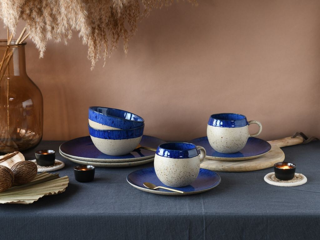Вы получите поистине необыкновенный комбинированный сервиз из 8 предметов от лучшего европейского производства премиум-класса в следующем составе: - 2 изысканные тарелки 29 см - 2 десертные тарелки 22 см - 2 универсальные миски 15 х 8 см - 2 сферические чашки около 40 кл. Посуда представлена ​​в ультрасовременной органичной форме в сочетании «песочного матового» и «темно-синего глянцевого». Различные крапинки и включения придают сервизу индивидуальный характер «ручной работы», то есть каждое изделие уникально. «Глубокое синее море»: «действительно впечатляет»!