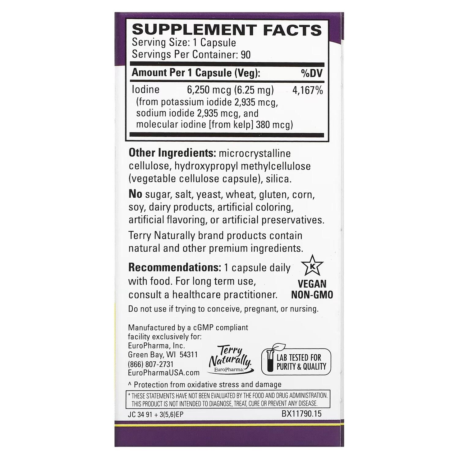 Добавка Terry Naturally Tri-Iodine, 90 капсул