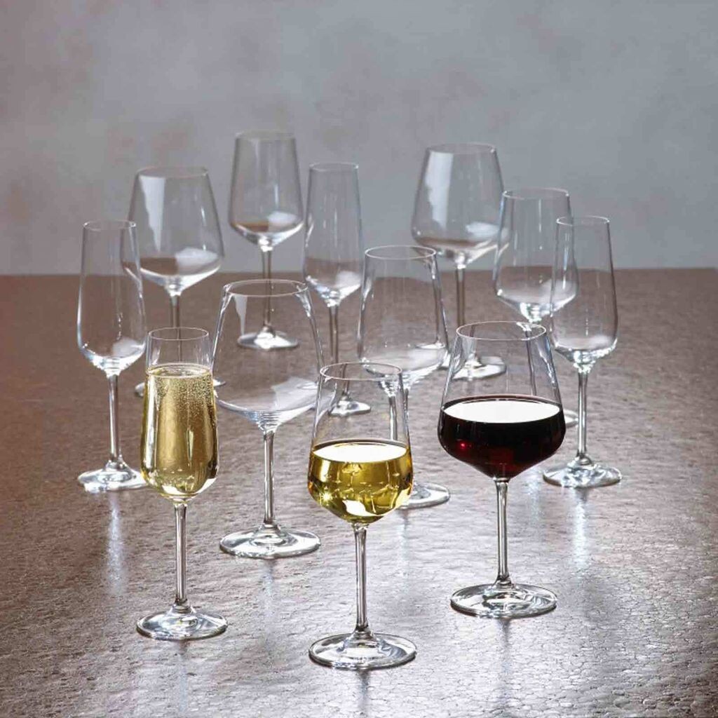 Содержимое коробки: 16 бокалов (4 красного вина, 4 белого вина, 4 шампанского, 4 воды)