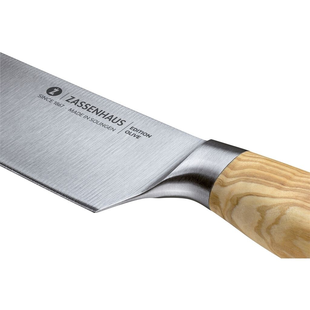 Поварской нож входит в серию Zassenhaus Edition Olive и имеет деревенский вид. Сочетание рукояти из оливкового дерева и лезвия из нержавеющей стали придает ножу неподвластную времени элегантность.