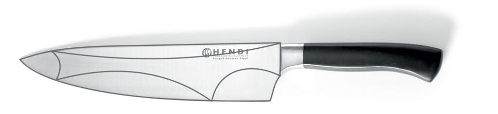 Нож Hendi Profi Line 20смВсе ножи точно выкованы из цельного куска высокоуглеродистой немецкой нержавеющей стали. Специальный хром-молибден-ванадиевый сплав X50CrMoV15 гарантирует следующие свойства: