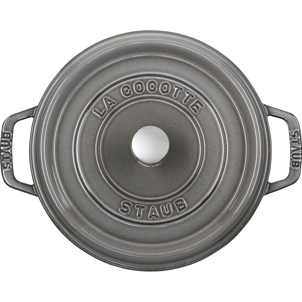 Круглая эмалированная чугунная кастрюля: для изысканных семейных обедов, рождественских ужинов, рагу, запеканок или пасты. Высококачественная кокотница STAUB идеально подходит для запекания, жарки и тушения мяса, рыбы, овощей и даже выпечки хлеба. Эта универсальная кокотница позволяет легко готовить полезные блюда, сохраняющие вкус и питательные вещества, практически без масла. Эмалированное дно позволяет использовать её на любых плитах, включая индукционные, и в духовке. Благодаря современному дизайну, разнообразным ярким цветам и рельефным надписям на крышке и ручках, эта кастрюля позволит вам подавать блюда с элегантностью.