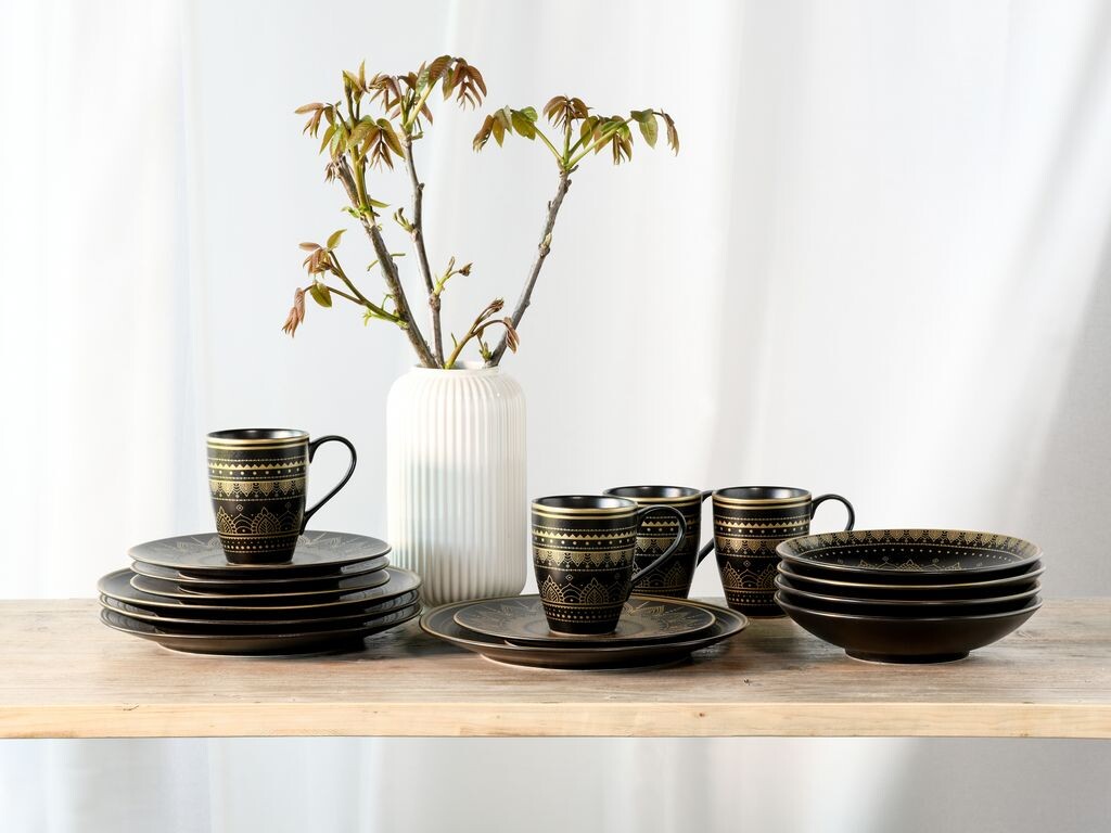 CreaTable, 23586, Mandala Black, комбинированный сервиз, 16 предметов, керамогранит, черный