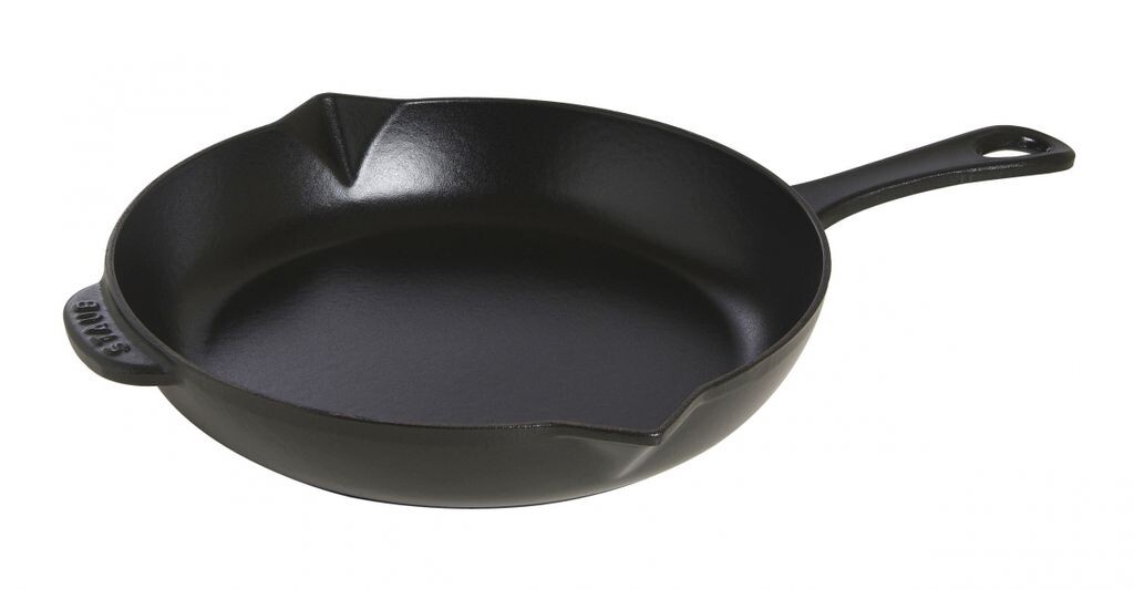 Сковороды от Staub изготавливаются из проверенного материала чугуна, который дополнительно покрывается эмалью. Поверхность прочная и легко чистится, как раз подходит для частого использования на кухне. Благодаря эффективному аккумулированию тепла обжаривание работает так же хорошо, как и медленное, стабильное приготовление. Прежде всего, равномерное выделение тепла обеспечивает бережное и здоровое приготовление пищи. Таким образом, ароматы и питательные вещества сохраняются особенно хорошо. Сковорода имеет диаметр 26 см. Она имеет чугунную ручку, поэтому сковороду можно использовать не только на любой плите, но и в духовке. Два носика используются для отвода лишнего жира или для расстановки соусов. Чугун имеет матовую черную эмаль, которая обладает вкусовыми свойствами. Они даже усиливаются при частом использовании. Поверхность сковороды-гриль прочная и чрезвычайно проста в уходе. Благодаря хорошему удержанию тепла чугуном пища остается теплой в течение длительного времени, так что вы можете легко подать ее в со вкусом оформленной сковороде на обеденном столе. Сковорода подходит для использования на всех типах плит, в том числе и на индукционных. Вы также можете без лишних слов поставить противень в духовку, например, аккуратно продолжить приготовление ранее обжаренного мяса. С помощью сковороды от Staub вы можете создавать вкусные блюда для жарки и вкусные соусы, которыми можно побаловать своих гостей.