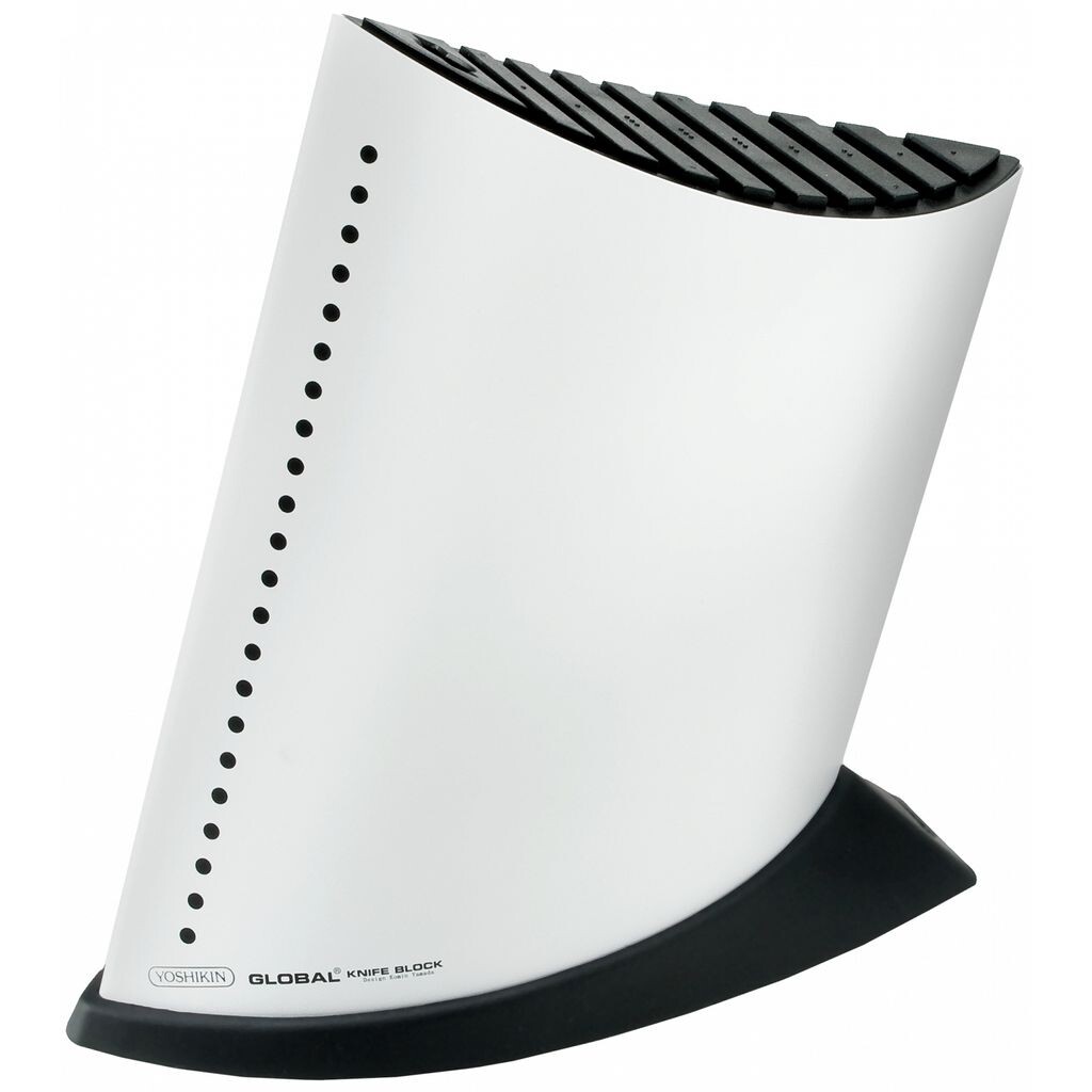 Ножевой блок GKB-52/CW Global, овальный, размер S, белый – это необорудованный ножевой блок Global, вмещающий до 9 ножей. Его элегантная, тонкая форма и оригинальный дизайн подходят для дизайнерских кухонь высокого качества. Блок ножей GKB-52/CW Global овальный, размер S, белый, легко чистится и гигиеничен. Резиновые планки защищают лезвия от царапин, а прочное основание из твердой резины обеспечивает надежную устойчивость блока ножей.