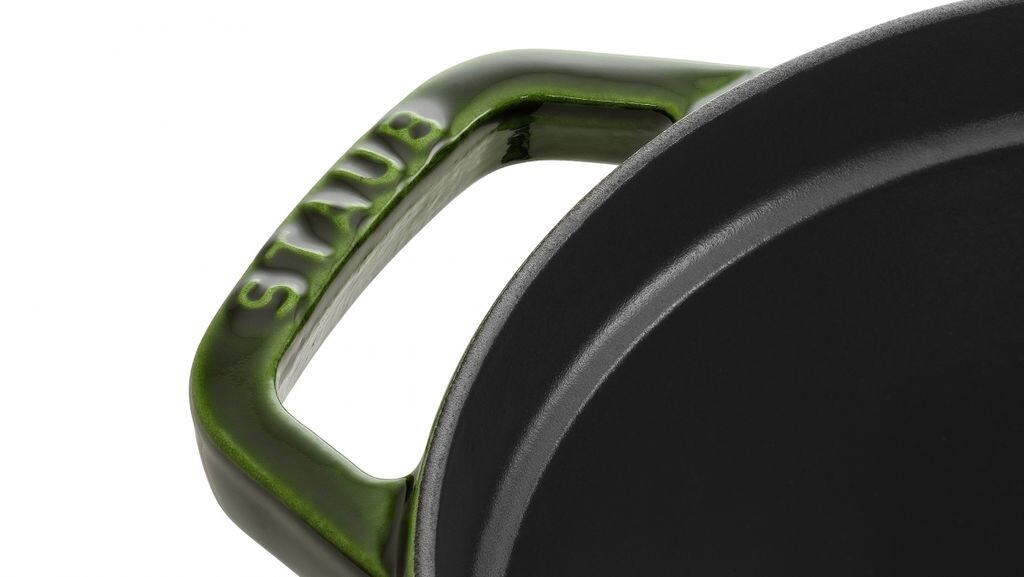 Овальный кокот в цвете «базилик» сочетает в себе инновационные технологии и традиционную долговечность. Эта чугунная посуда от Staub, La Cocotte, имеет эмалевое покрытие для оптимального сохранения тепла. Кокот подходит для газовых, электрических и индукционных плит. Диаметр кокотницы составляет 31 см, а объём — 5,5 литра. Прочное чугунное дно с высококачественным эмалевым покрытием обеспечивает сохранение тепла даже при низких температурах, поэтому вы можете хранить продукты в холодильнике. Благодаря характерным свойствам материала кокотница помогает медленно и бережно готовить блюда из мяса, рыбы и овощей. Помимо функциональности и прочности, её форма впечатляет своим традиционным внешним видом, который дополняет блестящая серебристая ручка на крышке. Благодаря практичности в использовании эта посуда подходит как для начинающих, так и для опытных кулинаров. Этот кокотница особенно подходит для тушения блюд, где необходимо сохранить естественный, насыщенный вкус ингредиентов.