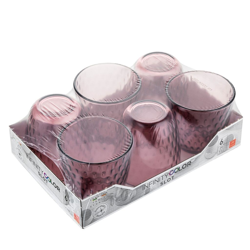Розовые стаканы Bormioli Slot идеально подходят для подачи воды и безалкогольных напитков. Благодаря емкости 29 мл и диаметру 8,5 см вам не придется постоянно доливать воду и вы сможете наслаждаться напитком. Очки Bormioli поставляются в упаковке по 6 штук и доступны в синем, розовом и прозрачном цветах.