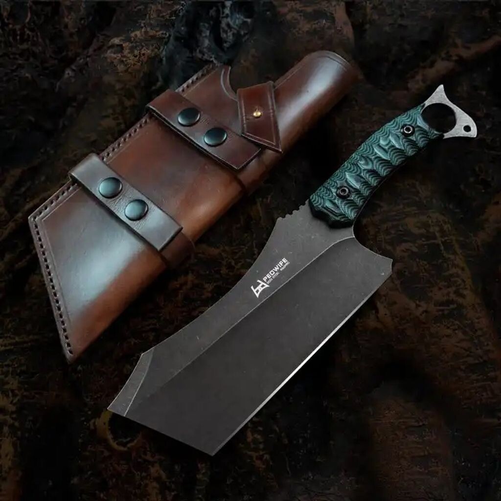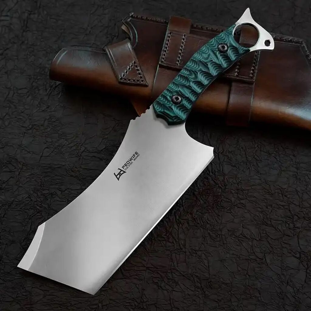ШЕДЕВР Кухонный топор Masaki Кухонный топор Masaki изготовлен из высококачественной высокоуглеродистой нержавеющей стали и станет идеальным подарком любому повару-любителю или профессиональному повару. Долото имеет твердость 60 – 62 HRC (Роквелла) и отличается стойкостью к истиранию и высокой стабильностью лезвия. Рукоять двухцветная (G10), ее форма рассчитана на надежный и удобный хват и прекрасно дополняет дизайн всего ножа. Нож поставляется в красивом чехле ручной работы из эко-кожи. Он отличается высокой твердостью и острыми краями, что обеспечивает максимальную производительность и долговечность резки, различное использование для нарезки овощей и мяса. Этот нож для мяса, обладающий чрезвычайно острым лезвием, превосходной износостойкостью и устойчивостью к пятнам, заслуживает гордости. Мы рекомендуем мыть, сушить и убирать нож сразу после использования. НЕ СТАВЬТЕ НОЖ В ПОСУДОМОЕЧНУЮ МАШИНУ!!! Спецификация: Материал лезвия: сталь DC53. Материал ручки: G10. Твердость: HRC60–62. Цвет: серебристый, с зеленой ручкой. Очень удобно держать. Не использовать для замороженных продуктов. Упаковка: нож — 1 шт., футляр — 1 шт. Чехол: эко-кожа ручной работы Длина: 30,1 см Длина лезвия: 18,7 см Толщина лезвия: 4 мм Вес: 460 г