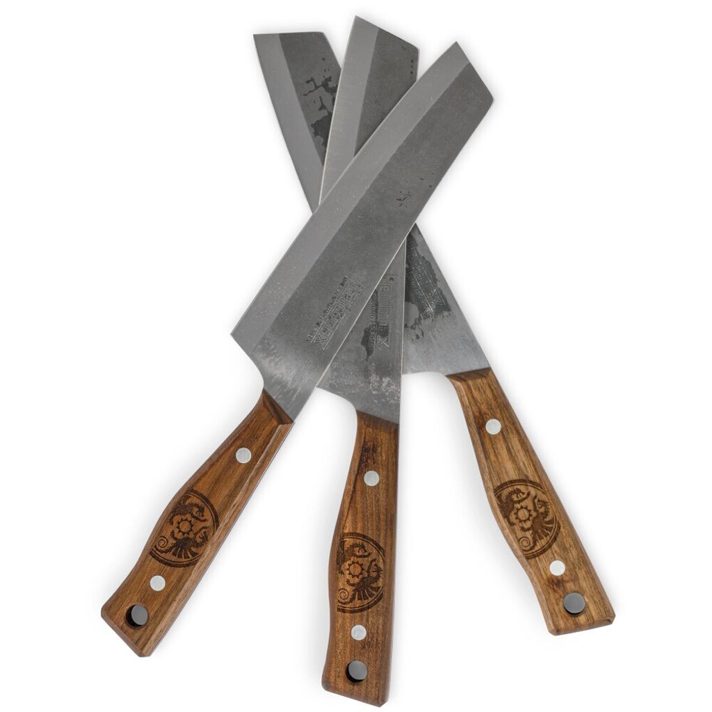 Поварской нож Petromax — это универсальные ножи, изготовленные вручную в Золингене для нарезки овощей, рыбы и мяса. С помощью индивидуального ножа вы сможете идеально сочетать приготовление пищи и природу на летней кухне, поскольку высококачественная сталь и прочная ручка из орехового дерева гарантируют, что деревенский нож станет вашим надежным инструментом. Что особенного: оксидный слой придает ножу исключительный вид и делает его уникальным изделием. Лезвие поварского ножа Petromax длиной 17 см было закалено и отшлифовано вручную в Золингене. Эти свойства делают нож вашего шеф-повара особенно острым, прочным и прочным. Это делает его незаменимым помощником при приготовлении пищи на открытом воздухе.