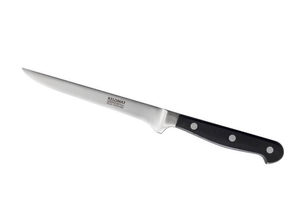 С помощью обвалочного ножа KELOMAT вы сможете быстро удалить кости, сухожилия и жир из рыбы, мяса, птицы и дичи. Лезвие заточено вручную и является идеальным инструментом для приготовления мяса, особенно для его отделения от костей. Нож долго остается острым и точно скользит по каждому разрезу. Даже спустя много лет клинок остается устойчивым к коррозии и сохраняет заточку. Благодаря рукоятке специальной формы вы можете долгое время резать специальным ножом для обвалки, не утомляя суставы. Нож также будет привлекать внимание на кухне благодаря безупречному исполнению и приклепанной ручке.
