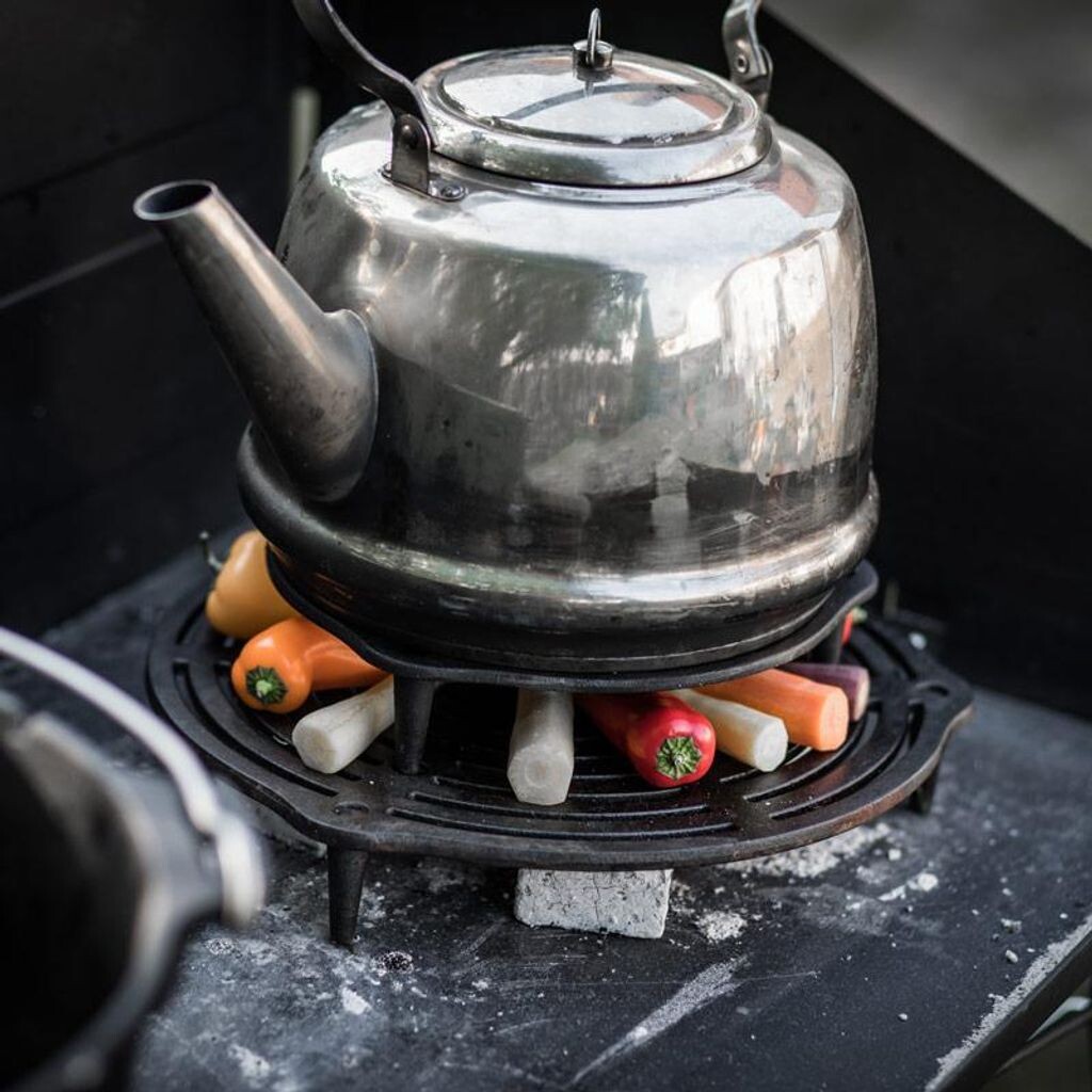 Для приготовления на пару в жаровне используйте решетку или просто поставьте несколько решеток друг на друга. Если решетку поместить прямо в угли, ей не понадобится много времени, чтобы на мясе, приготовленном на гриле, зажарился идеальный узор гриля. Или вы можете поместить решетку в огонь и использовать ее в качестве основы для перколятора. Чайники или голландские печи без ножек. Он также может служить практичной подставкой для горячей посуды на столе.