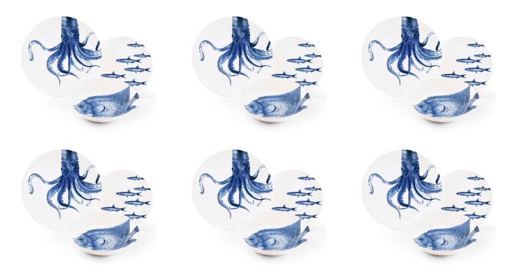 Набор посуды Excelsa, 3 предмета Faune&Flore, керамика синий и белый