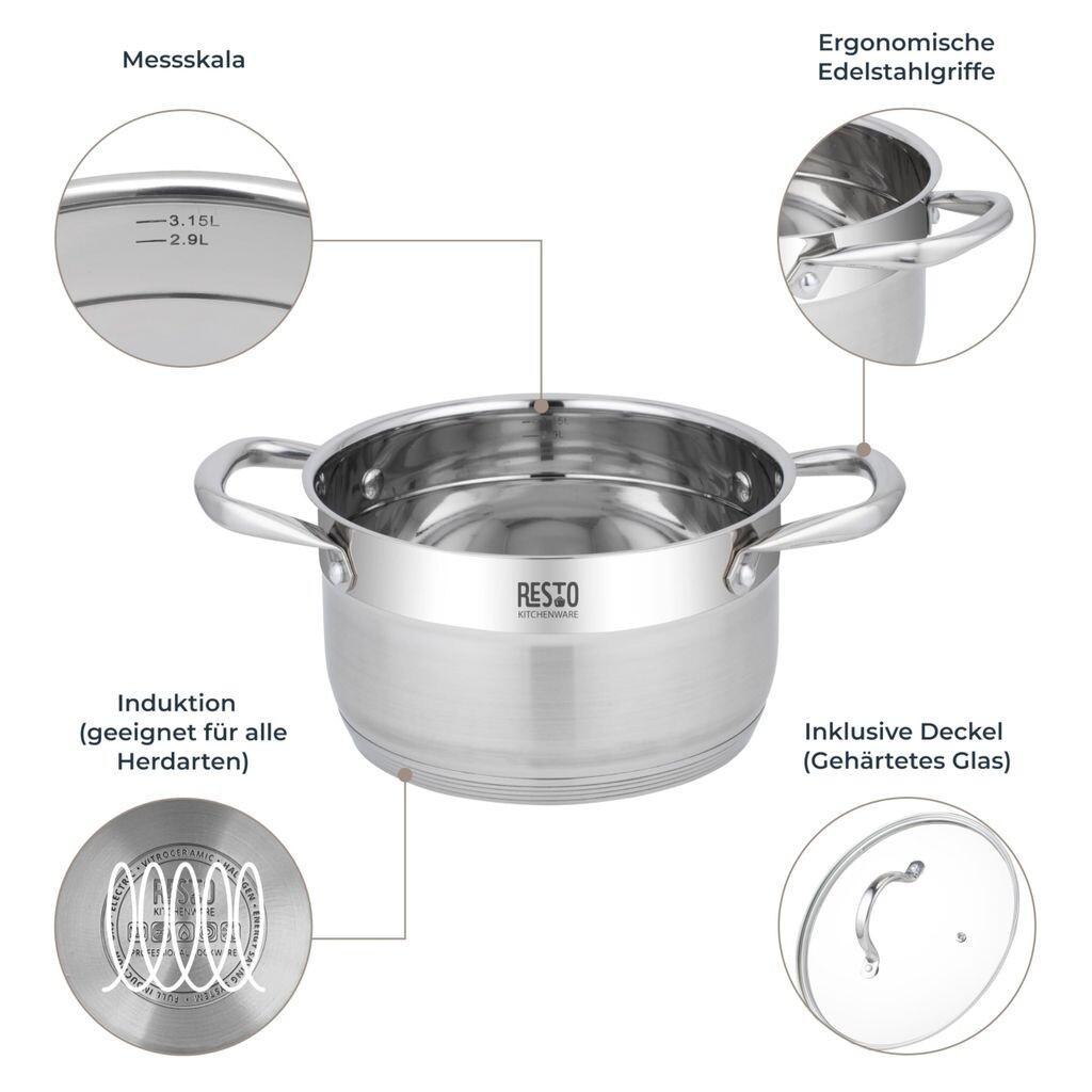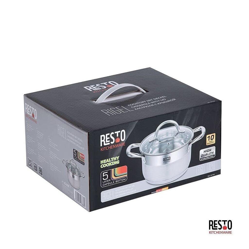 Практичные элементы определенно продуманы. Раньше нам приходилось искать тряпки, чтобы передвигать сковороду, но с сегодняшними инновационными материалами это ушло в прошлое. Именно поэтому Resto разработал сковороду с термостойкими ручками и крышкой из термостойкого стекла. Теперь вам не придется беспокоиться о том, что вы обожжете пальцы, и вы сможете легко передвигать кастрюлю по плите.