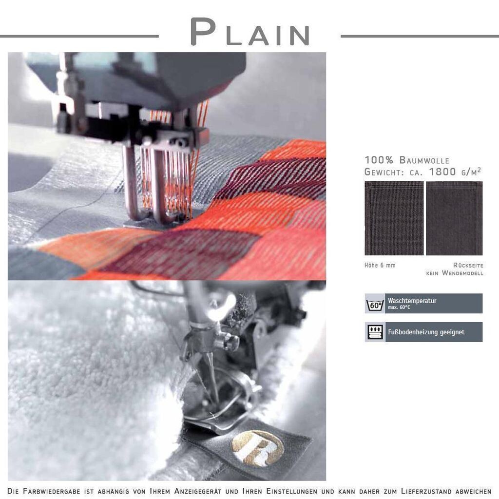 Коврик для ванной PLAIN соткан и окрашен поштучно на небольшой фабрике из тончайшей хлопчатобумажной пряжи. Высокая и низкая постановка делает ее оживленной и привлекательной в ванной комнате. Обычный имеет вес на квадратный метр около 1. Вес 800 грамм, можно использовать с одной стороны; стирается при температуре до 60°, подходит для сушки в барабане и пола с подогревом.