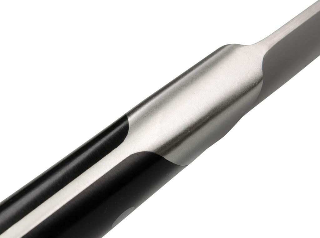 Серия поварских ножей Böker Forge сочетает в себе инновационный и динамичный дизайн с классическим выбором материалов премиум-качества. Что бросается в глаза, так это привлекательные линии, которые явно выделяют ножи из массы обычных кухонных ножей. не выглядя при этом слишком эксцентричным. Кроме того, серия Böker Forge впечатляет чрезвычайно привлекательным соотношением цены и качества. Ножи из хромомолибденованадиевой нержавеющей стали X50CrMoV15 оптимально сбалансированы и идеально лежат в руке благодаря эргономичной форме рукоятки. Черные накладки рукоятки из высококачественного специального пластика традиционно соединены с цельно сплошным хвостовиком ножа тремя заклепками из нержавеющей стали, прочно и без соединений.