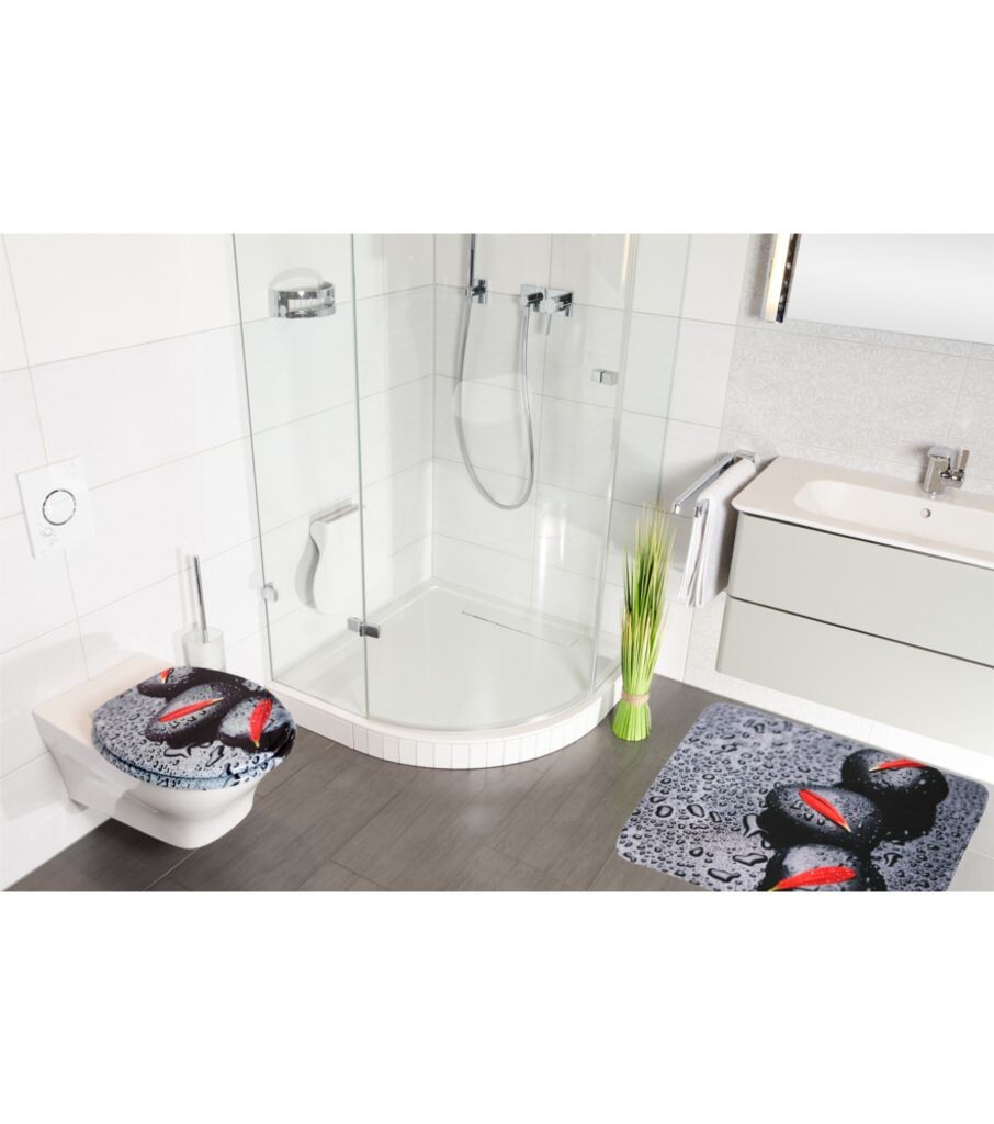 Этот коврик для ванны можно оптимально дополнить подходящим сиденьем для унитаза, занавеской для душа, пробкой для раковины и пробкой для ванны от SANILO.