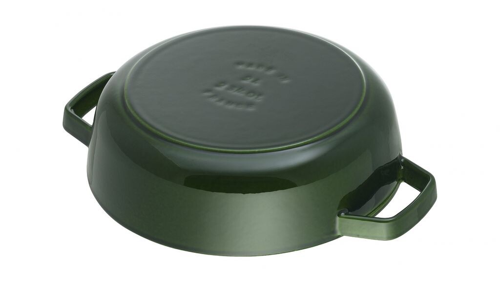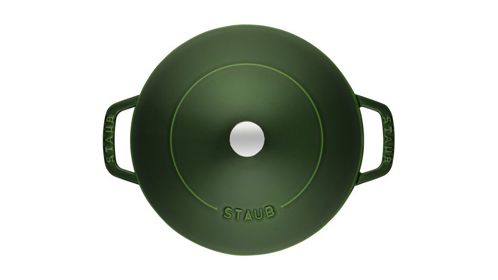 Получится ли жаркое и овощное блюдо, зависит не только от качества ингредиентов. Сосуд для приготовления пищи также оказывает решающее влияние на нежность и аромат пищи. В многофункциональной обжарочной машине со структурой Chistera Drop ваши творения будут удивительно нежными. Каплевидный узор на куполообразной крышке позволяет конденсату, возникающему во время приготовления, мягко и равномерно попадать на мясо или овощи. Таким образом, пища не пересыхает и сохраняет свой неповторимый аромат. Многофункциональная жаровня Staub подходит для приготовления многих блюд. Благодаря его черному цвету и благородной ручке латунного цвета посередине круглой крышки вы можете поставить его прямо на стол для подачи своего меню. Две боковые ручки позволяют безопасно и стабильно транспортировать жаровню. Круглая форма позволяет использовать жаровню как на большой плите, так и в духовке. Изготовленная из эмалированного чугуна, многофункциональная жаровня имеет диаметр 24 см и общую емкость 2,4 л. Его длина составляет 31,7 см с ручками и 11,6 см в высоту с крышкой. Жаровня из серии жаровен позволяет готовить нежные блюда и стильно подавать самостоятельно созданные блюда на любовно накрытом столе.
