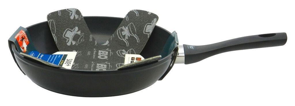 Высококачественная сковорода диаметром 28 см от Elo изготовлена из кованого алюминия. Толщина стенок сковороды 2,5 мм, толщина дна 3,6 мм. Она имеет двухслойное долговечное антипригарное покрытие. Сковорода Save+ экономит электроэнергию и легко чистится.