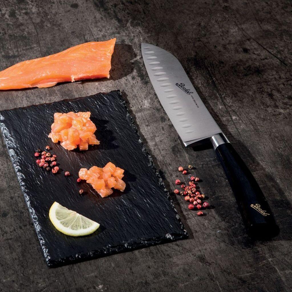НОЖ ДЛЯ МЯСА, РЫБЫ И ОВОЩЕЙНадежный нож со сбалансированным соотношением веса и жесткости. Универсальный кухонный прибор традиционного японского дизайна для измельчения и нарезки мяса, рыбы, фруктов и овощей, даже крупных. Характерные альвеолы облегчают разделение срезов.