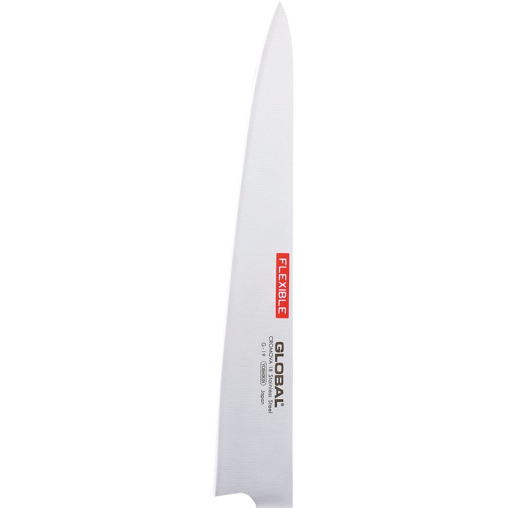 G-18 в определенной степени подходит для ловли более крупной рыбы. Именно поэтому компания Global добавила в свой ассортимент гибкий филетировочный нож G-19 Global Yoshikin — гибкий филетировочный нож с длиной лезвия 27 см. Увеличение длины на 3 см на первый взгляд кажется не таким уж большим, но в повседневной кухонной практике это может оказаться огромным преимуществом.