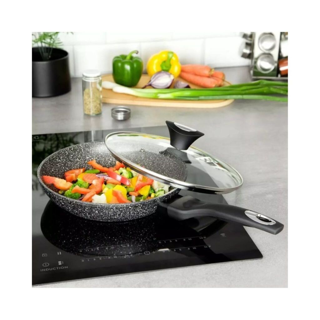 Гранитное покрытие особенно устойчиво к царапинам и долговечно. Также возможна очистка в посудомоечной машине. Эта сковорода, изготовленная из кованого алюминия, подходит для всех плит: газовых, электрических, керамических, галогенных и индукционных.