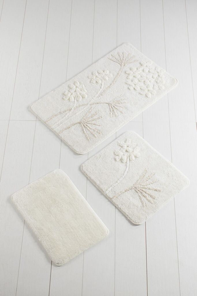 Ощутите роскошь и комфорт с нашим набором ковриков для ванной из трех предметов.