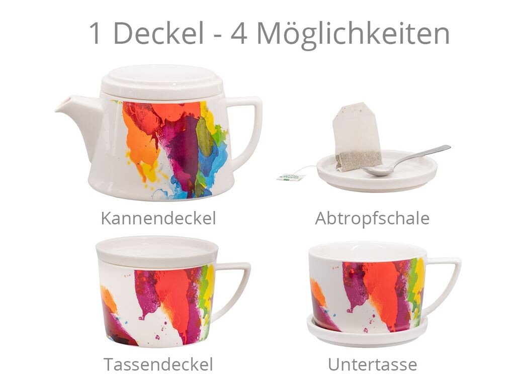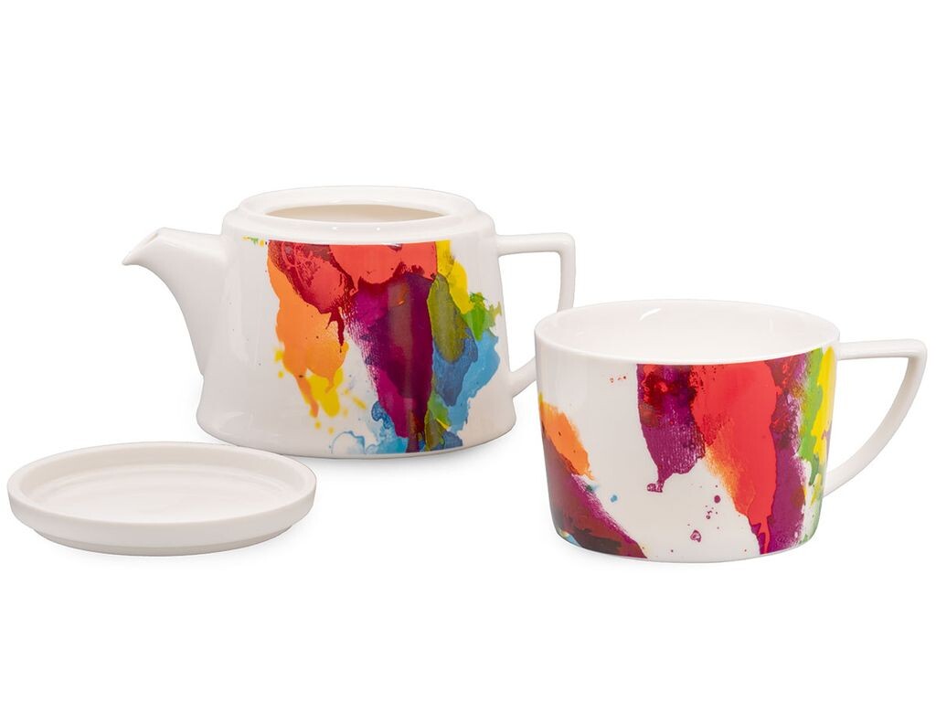 Чай Könitz One Color Flow, фарфор, 600мл. Чайник + чашка + крышка или поддон, мультиколор