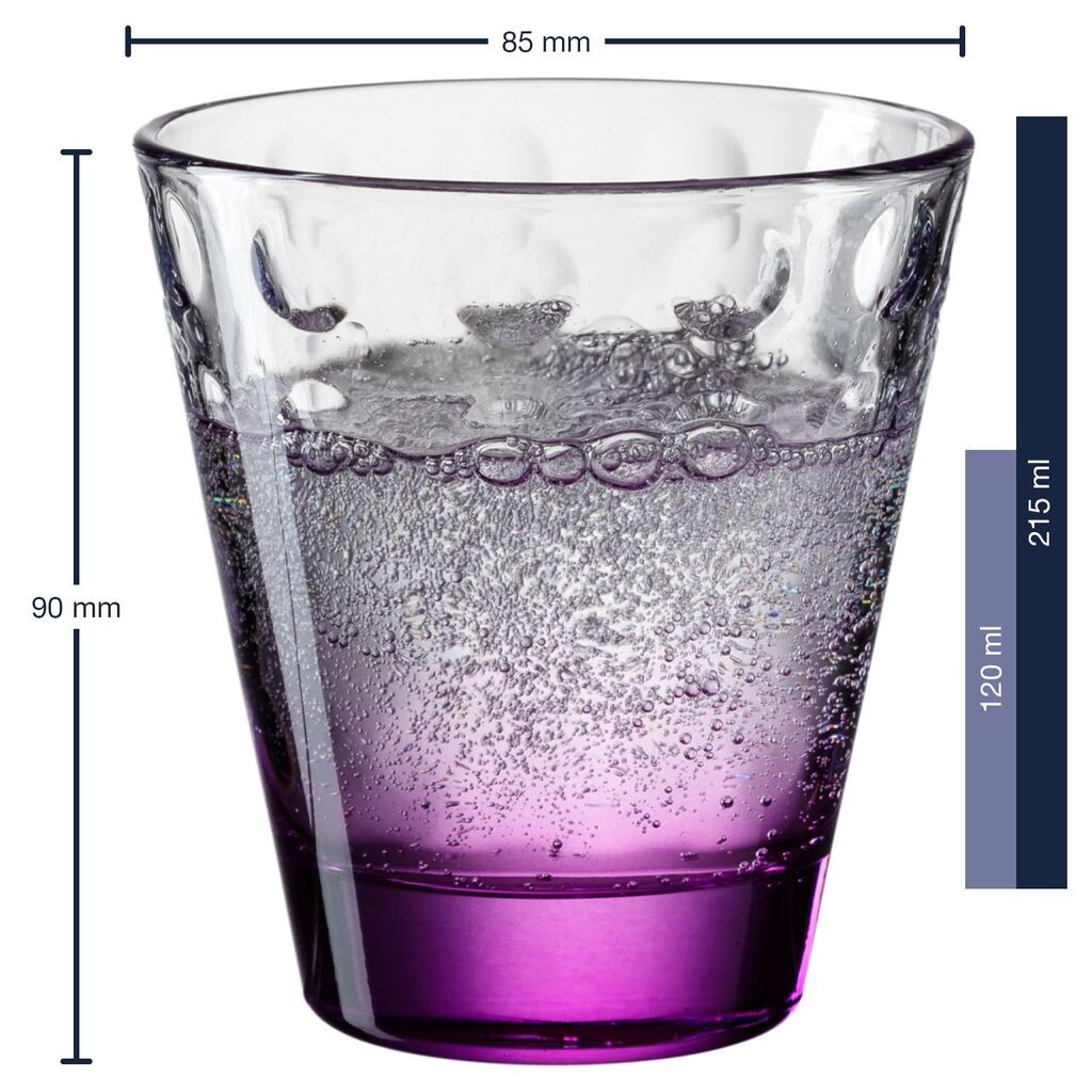 Создайте невероятные моменты наслаждения с помощью красивого стакана серии OPTIC. Он был выкрашен в фиолетовый цвет и выглядит современно и свежо. Этот стакан конической формы просто незаменим. Вознаграждайте себя прекрасными вещами в повседневной жизни – вместе с LEONARDO. COLORI — это собственная цветовая гамма LEONARDO. Серия стекол обработана долговечной высококачественной гидроглазурью. Эти краски разрабатываются исключительно в Германии и обеспечивают высокую устойчивость продукции к повседневному использованию. Абсолютно светостойкий, современный и элегантный: это то, что обещает COLORI. Стакан серии OPTIC можно мыть в посудомоечной машине. В набор входят 6 стаканов разных цветов. Лучше не думать об этом долго! Вы тоже можете насладиться этим красивым фиолетовым стаканом!