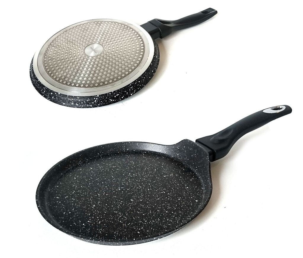 Гранитное антипригарное покрытие имеет гранитное зерно, обогащенное для достижения большей твердости. Он тверже тефлона, но при этом сохраняет преимущества тефлона: не горит и хорошо распределяет тепло. Она сочетает в себе преимущества чугунной и тефлоновой посуды. Он обладает всеми преимуществами тефлона, но более устойчив к повреждениям, превосходя даже керамические покрытия.
