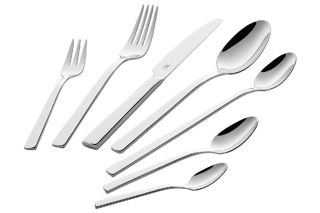 6 столовых ножей, 6 столовых ложек, 6 столовых вилок, 6 вилок для торта, 6 кофейных ложек, 6 ложек для эспрессо. 6 ложек латте маккиато