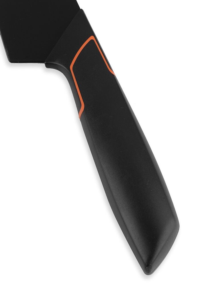 Тип ножа: Нож бытовой Размер лезвия: 19 см Можно мыть в посудомоечной машине сопротивление: Да Материал Нож: Нержавеющая сталь Цвет ручки: Черный/Оранжевый Цвет лезвия: Черный