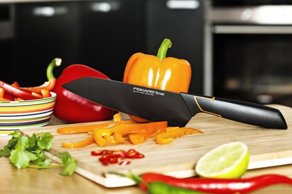 - Нож Fiskars “Edge” имеет тонкий, современный дизайн и инновационные функции, обеспечивающие исключительно легкое обращение