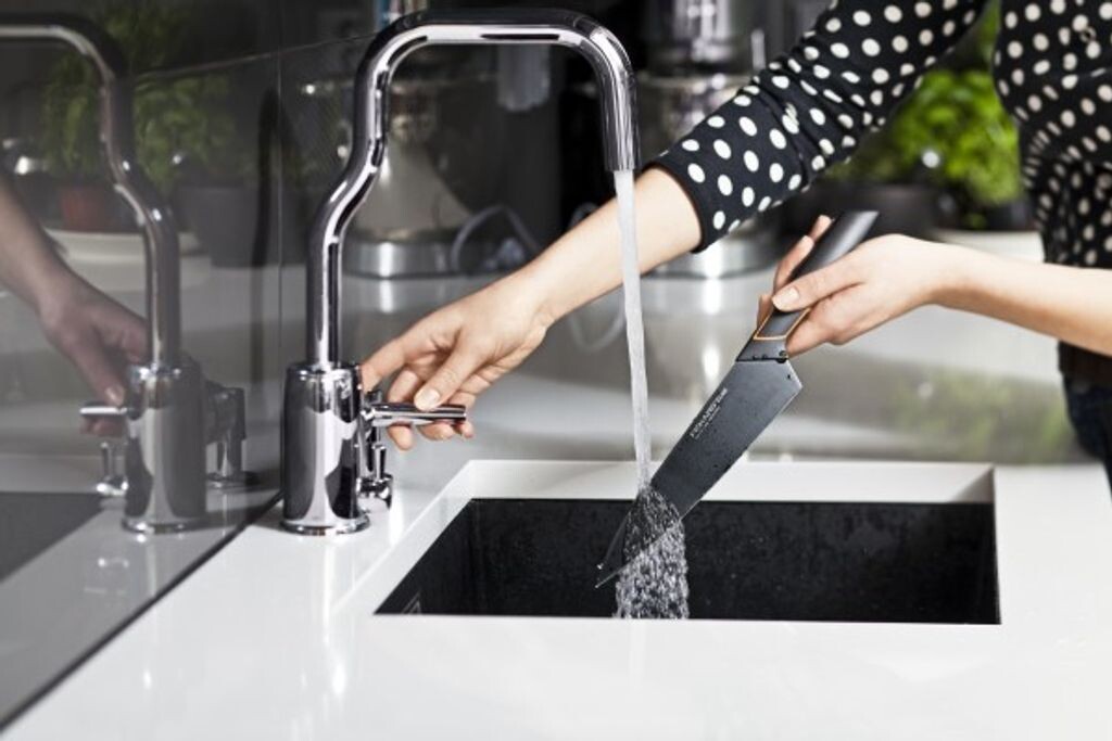 Fiskars Лезвие шеф-ножа с простым в уходе покрытием из ПТФЭ, которое предотвращает появление ржавчины и облегчает очистку. Нож с гигиенически герметичной ручкой. Ручки изготовлены из ударопрочного АБС-пластика, который можно мыть в посудомоечной машине. Лезвия дольше остаются острыми и их легче затачивать. Заостренное и очень острое лезвие длиной 19 см из японской нержавеющей стали легко и точно разрезает все ингредиенты. Покрытие из ПФТЕ предотвращает прилипание обрезков и образование ржавчины.