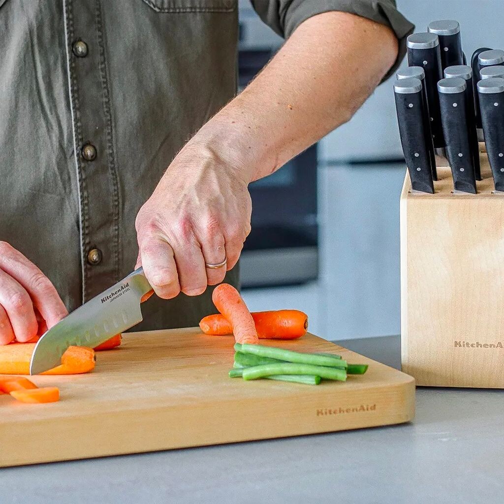 Блок для ножей KitchenAid из березового дерева содержит все необходимое для повседневного приготовления пищи.