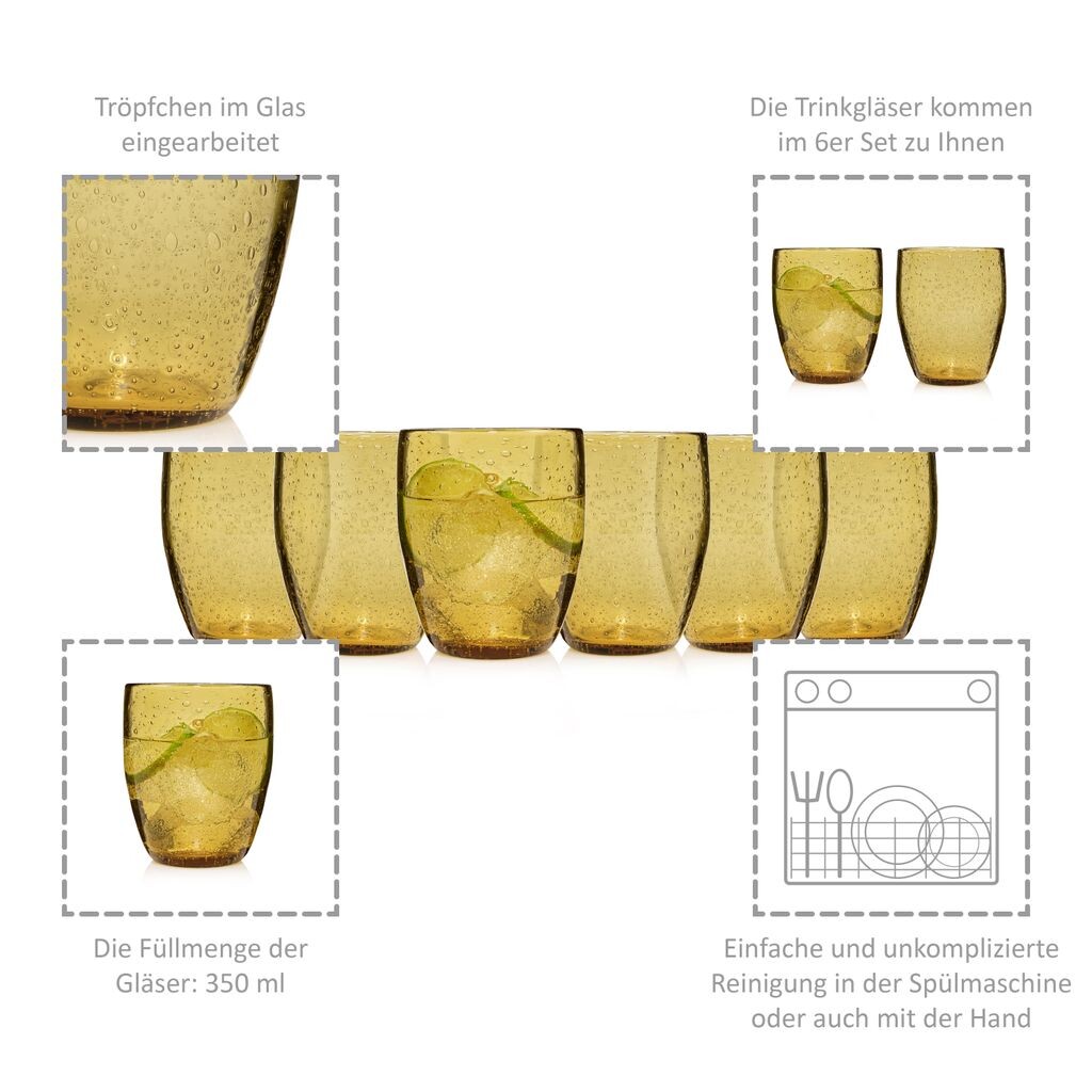 Современные стаканы янтарного цвета прекрасно дополнят сервировку вашего стола. Этот набор стаканов для воды, который можно мыть в посудомоечной машине, не только великолепно выглядит, но и чрезвычайно функционален, долговечен и надежен.