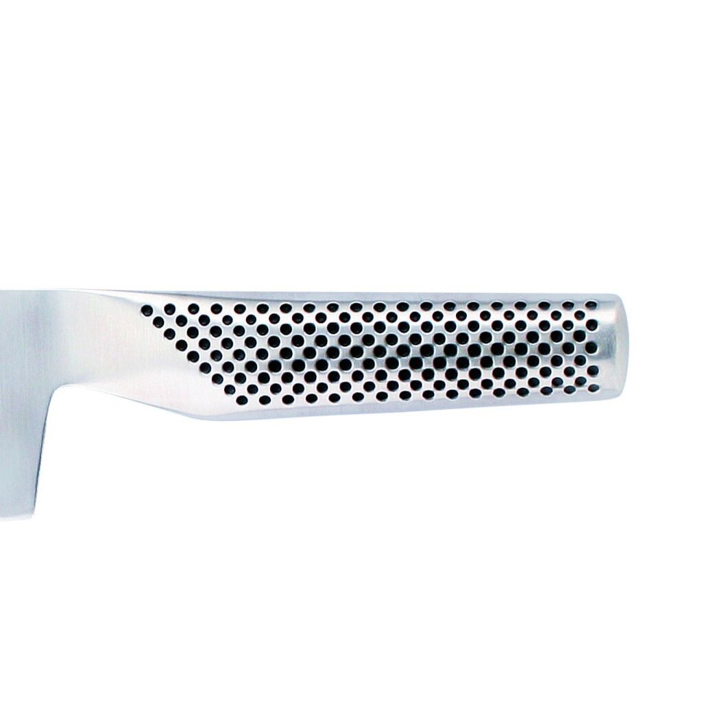 Нож G-5 давно пользуется популярностью у покупателей и является одним из самых продаваемых ножей оригинальной серии Global . Длинное, плоское, прямоугольное лезвие с лёгкой заточкой. Нож для овощей G-5 длиной 18 см вдохновлён традиционными японскими ножами Usaba, популярными среди профессиональных поваров Токио, специализирующихся на овощах. Форма лезвия обеспечивает движение лезвия вверх-вниз, при этом лезвие полностью соприкасается с разделочной доской и проникает в овощи. Не обязательно Толкайте и тяните нож горизонтально во время резки. В европейской кухне обычно используется гораздо больше нарезанных овощей, чем в японской, поэтому этот нож всегда был предпочтительным выбором в наборах Global. В серии Global представлено несколько вариантов этого ножа.