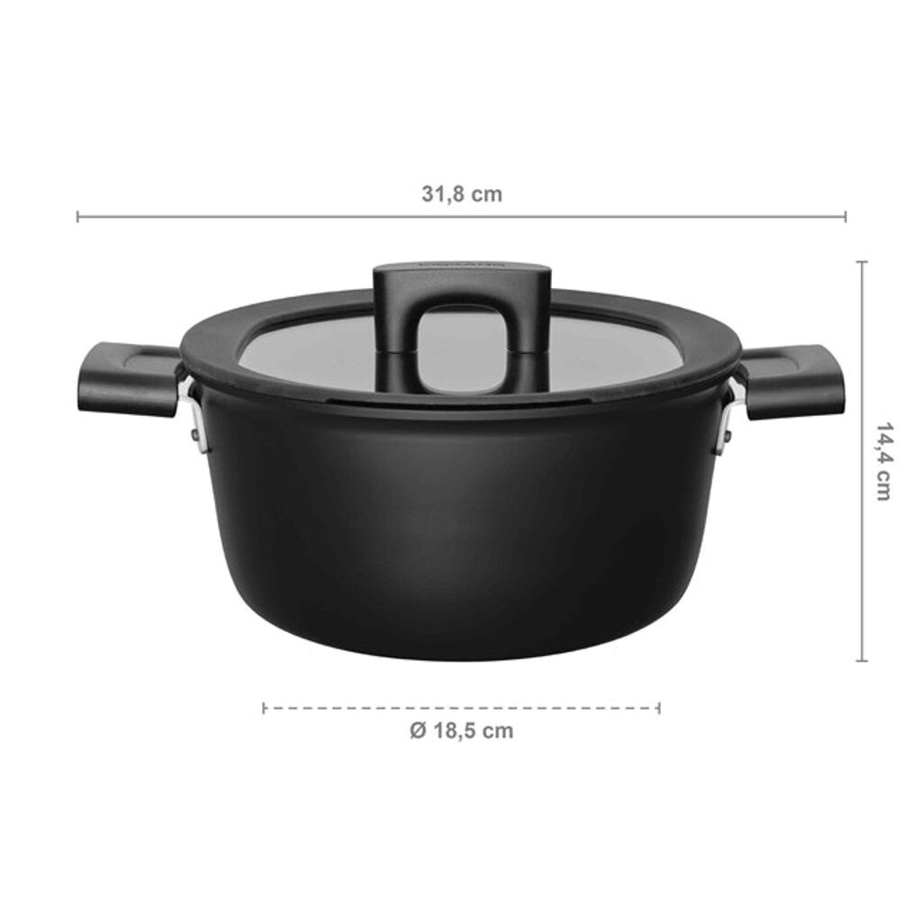 Серия посуды Hard Face разработана для самых сложных повседневных задач на кухне. Антипригарное покрытие Hardtec Superior+ невероятно прочное. Ручки изготовлены из бакелита. Толстое дно идеально распределяет тепло. Технология Energy Base гарантирует, что посуда нагревается на керамических плитах на 50% быстрее, чем обычные кастрюли, экономя до 30% энергии. Стеклянная крышка с силиконовым ободом оснащена функциями выпуска пара, слива и наливания воды. Посуду можно мыть в посудомоечной машине. Сделано в Финляндии.