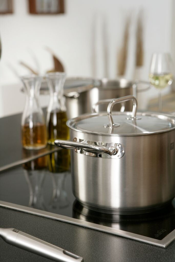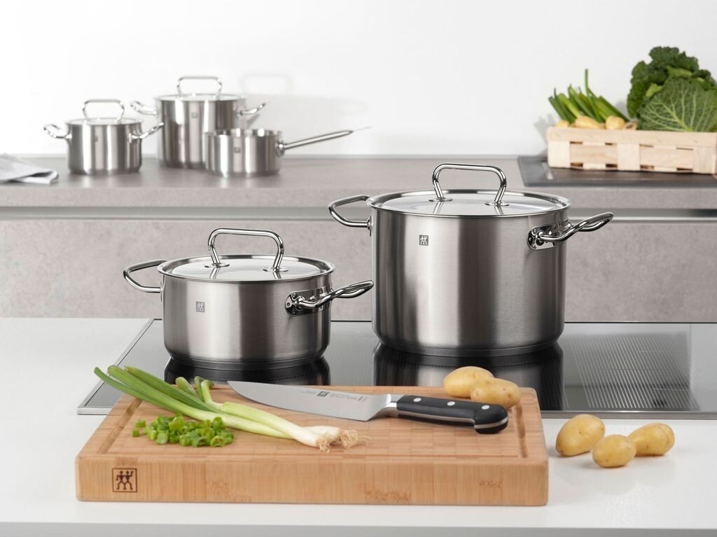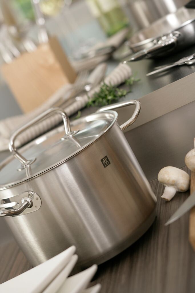 Кастрюля принадлежит к серии TWIN Classic, которая состоит из множества кухонных кастрюль, кастрюль и жаровен и приглашает вас отправиться в кулинарное путешествие. Кастрюли этой серии имеют сэндвич-основание. который оптимально сохраняет и распределяет тепло. В то же время это помогает экономить энергию. Внешняя поверхность изготовлена из высококачественной нержавеющей стали, устойчивой к царапинам. Кастрюли этой серии также хорошо смотрятся благодаря элегантной сатиновой поверхности.