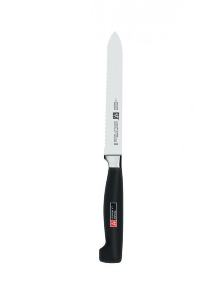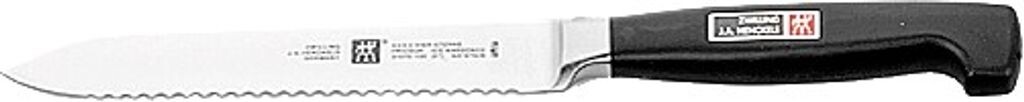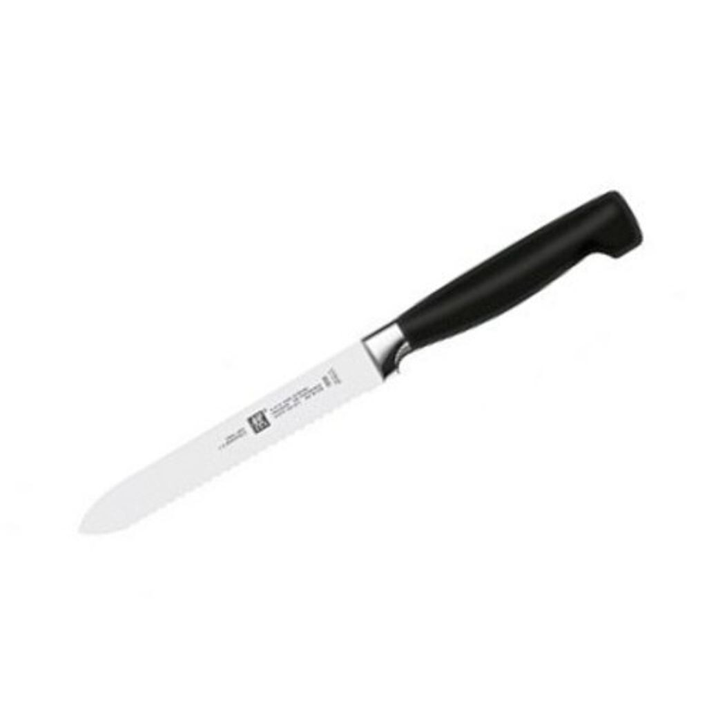 Этот универсальный нож из серии FOUR STARS впечатляет проверенным классическим дизайном. Этот нож характеризуют эргономичность и высокий уровень комфорта в обращении. Это нож среднего размера с длиной лезвия 13 см, который можно использовать по-разному. Зазубренная кромка делает универсальный нож универсальным помощником на кухне, позволяя нарезать колбасу, сыр или помидоры удобными ломтиками. Он особенно идеален для приготовления закусок и холодных блюд.
